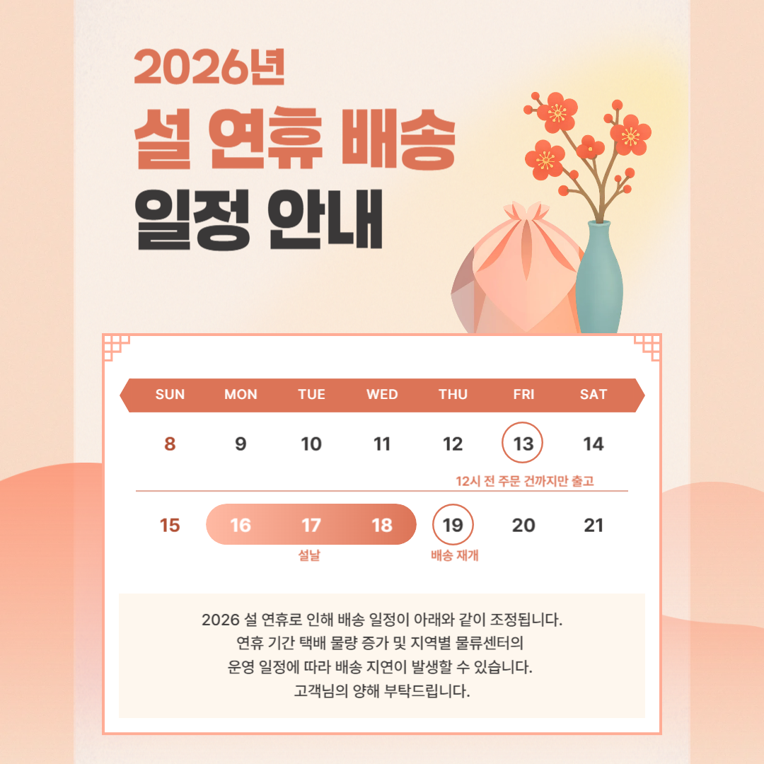 2. 해외구매 특성상 주문에서 배송까지는 평균 10~15일이 소요됩니다. 간혹 현지 제품 수급에 따라 부득이하게 시일이 더 소요 될 수 있으니 구매시 좀 더 여유있게 주문하시길 권합니다.