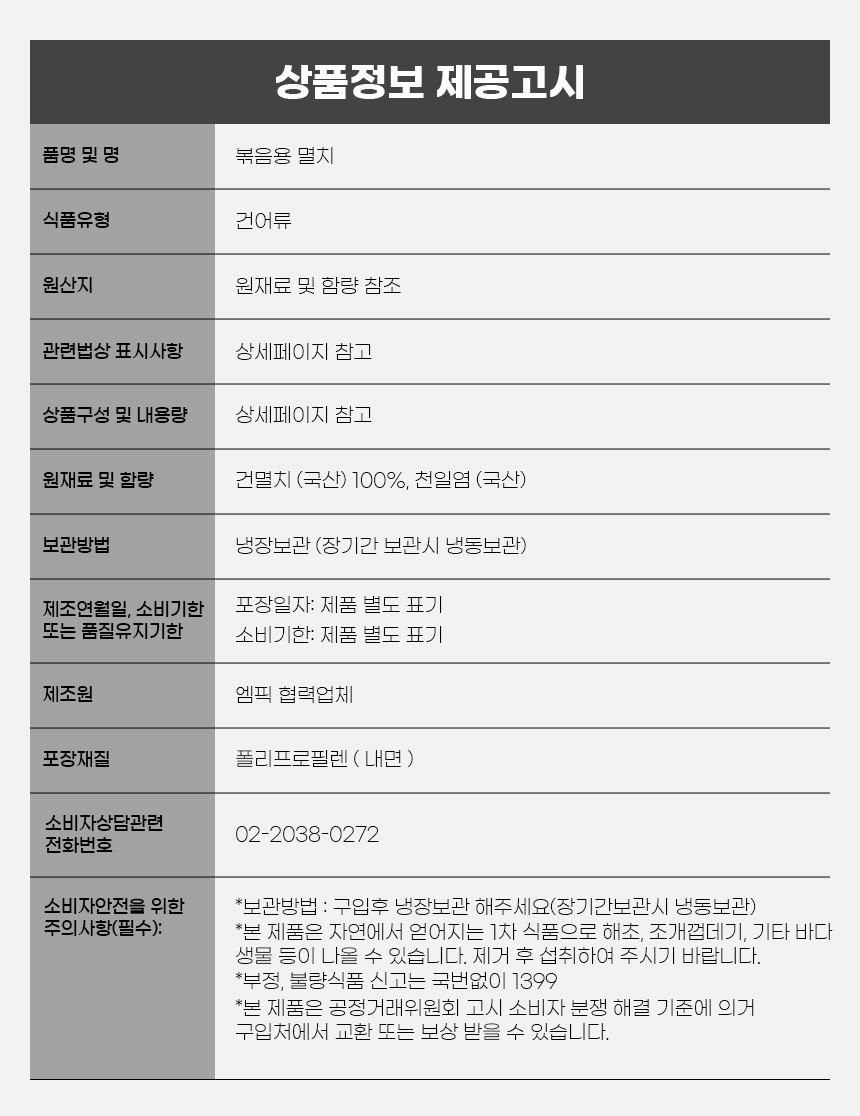 CJ프레시마켓,[엠픽] 국내산 햇멸치로 만든 볶음용 지리멸치 150g+150g