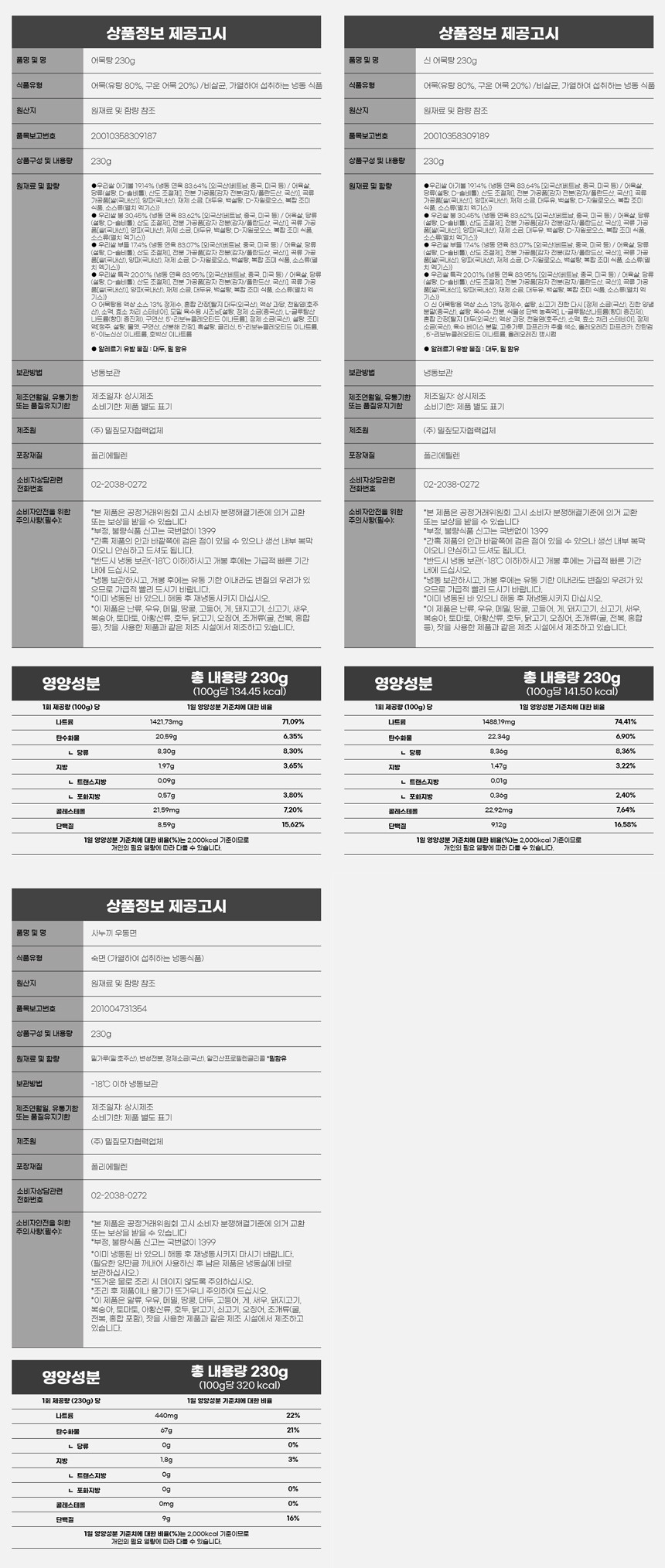 • 영양성분(영양성분 표시대상 식품에 한함)