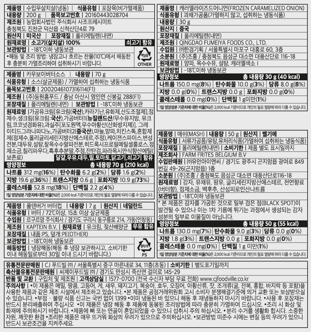 • 원재료명 (농수산물의 원산지 표시 등에 관한 법률에 따른 원산지 표시 포함) 및 함량