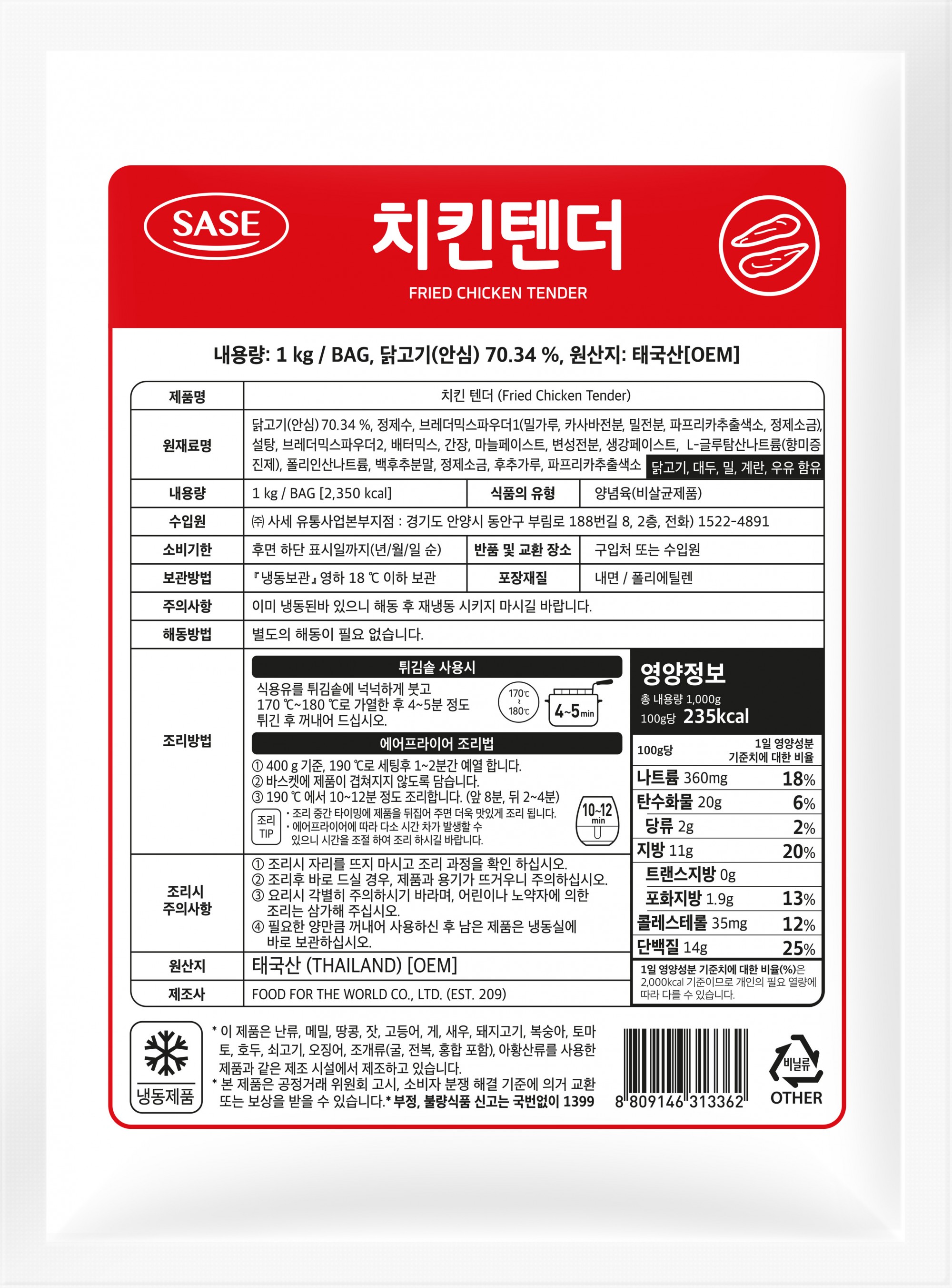 [직영특가] 사세통상 치킨텐더(1kg/EA)