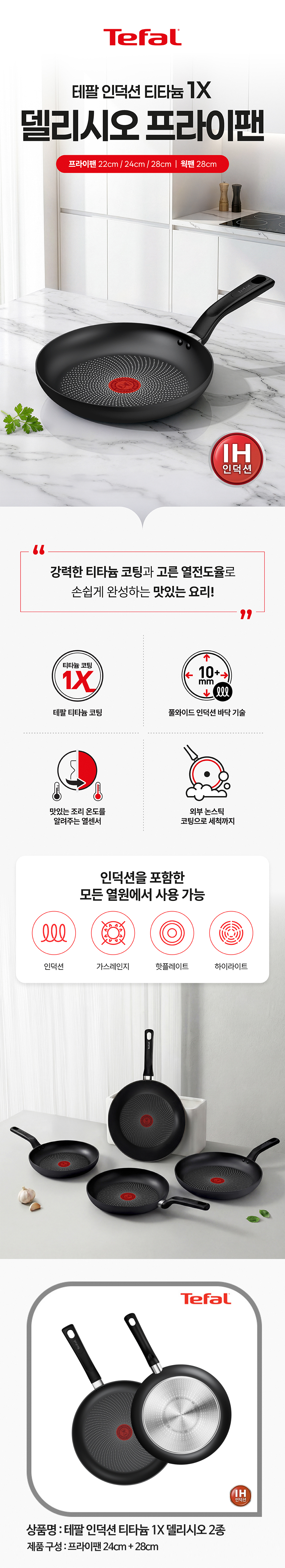 [테팔] 인덕션 티타늄 델리시오 2종세트 (프라이팬 24cm + 28cm)