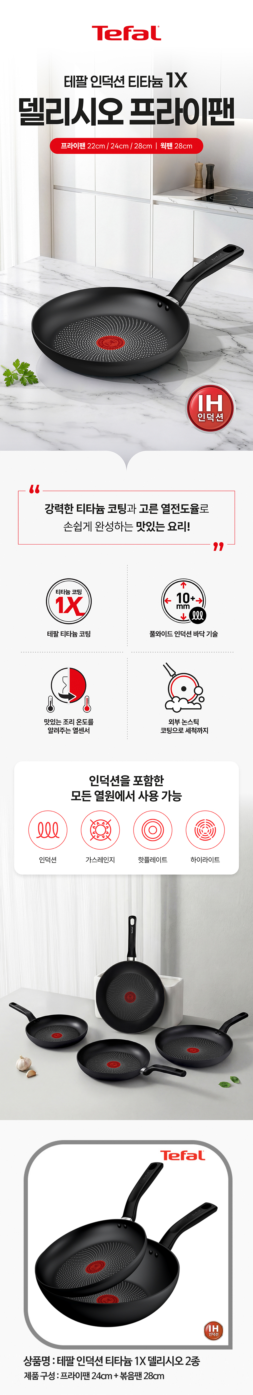 [테팔] 인덕션 티타늄 델리시오 2종세트 (프라이팬 24cm + 볶음팬 28cm)