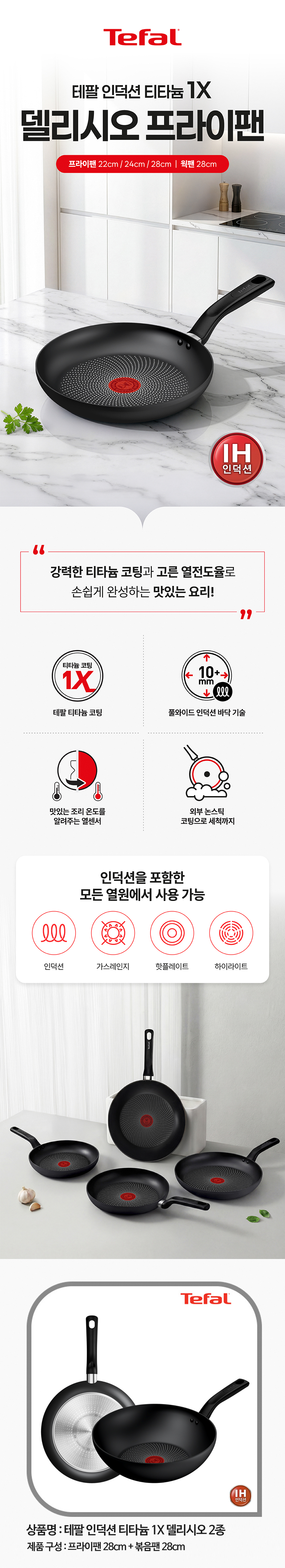[테팔] 인덕션 티타늄 델리시오 2종세트 (프라이팬 28cm + 볶음팬 28cm)
