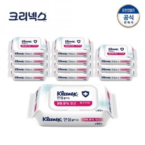 크리넥스 안심 물티슈 캡형 60매 x 12팩