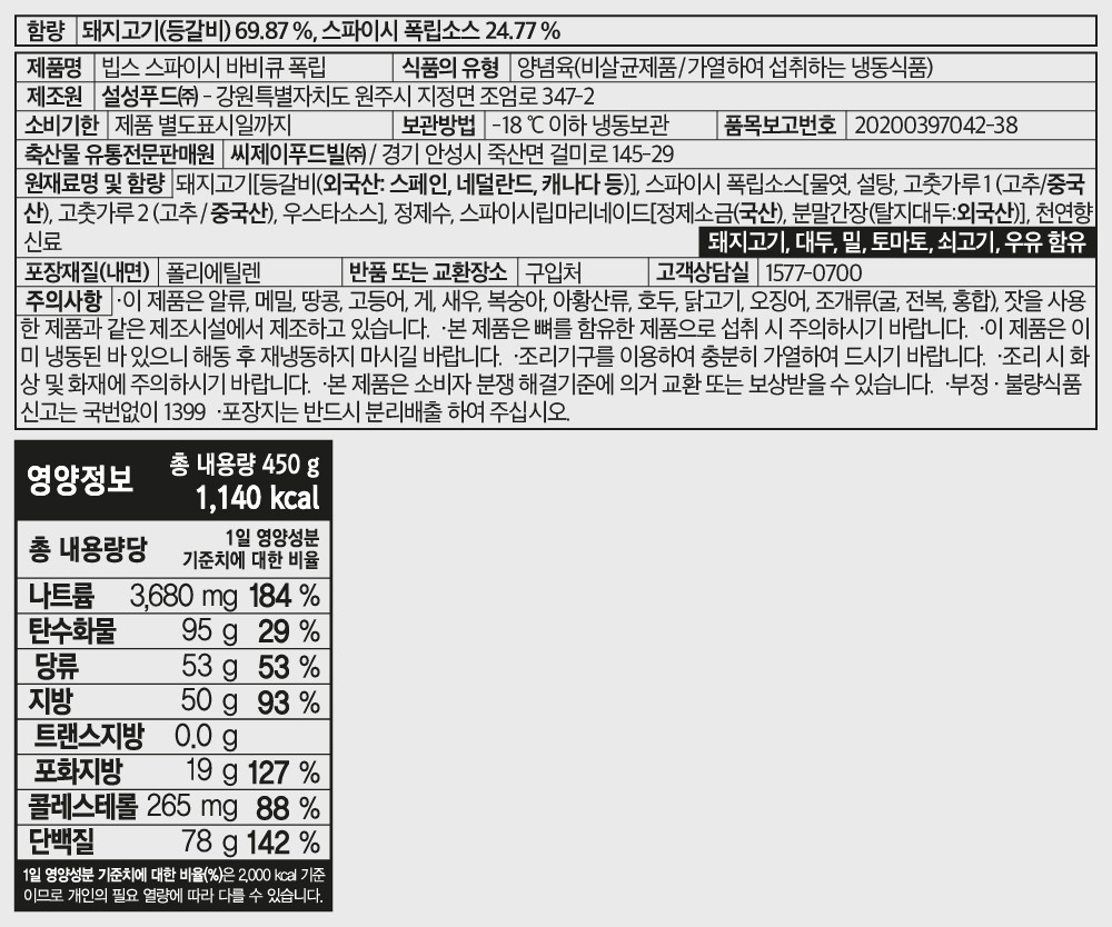CJ프레시마켓,빕스 스파이시 폭립 450g