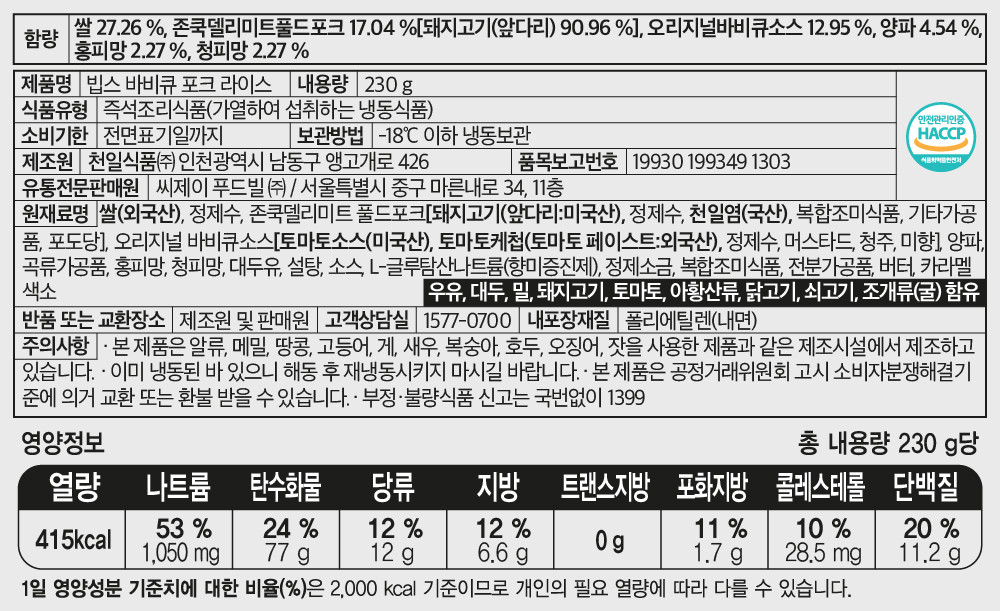 • 빕스 바비큐 포크 라이스 5인분 (230gX5팩)