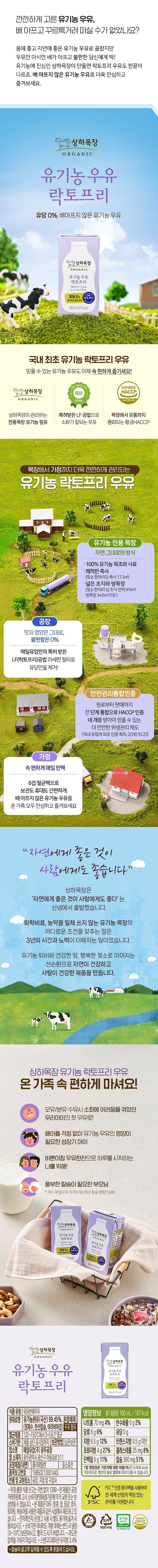 CJ프레시마켓,상하목장 유기농우유 락토프리 190ml*24