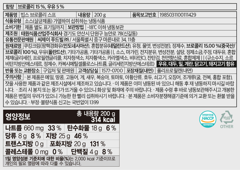 CJ프레시마켓,빕스 브로콜리스프 200g
