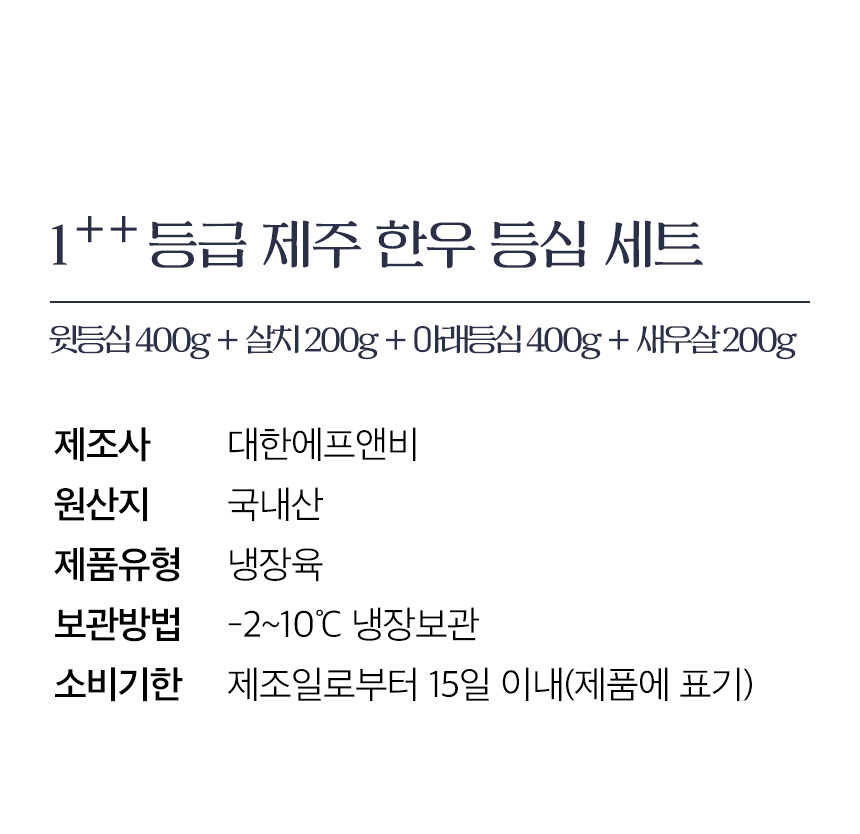 1++등급 제주 한우 등심 선물세트 1.2kg (윗등심 400g+살치 200g+아래등심 400g+새우살 200g)