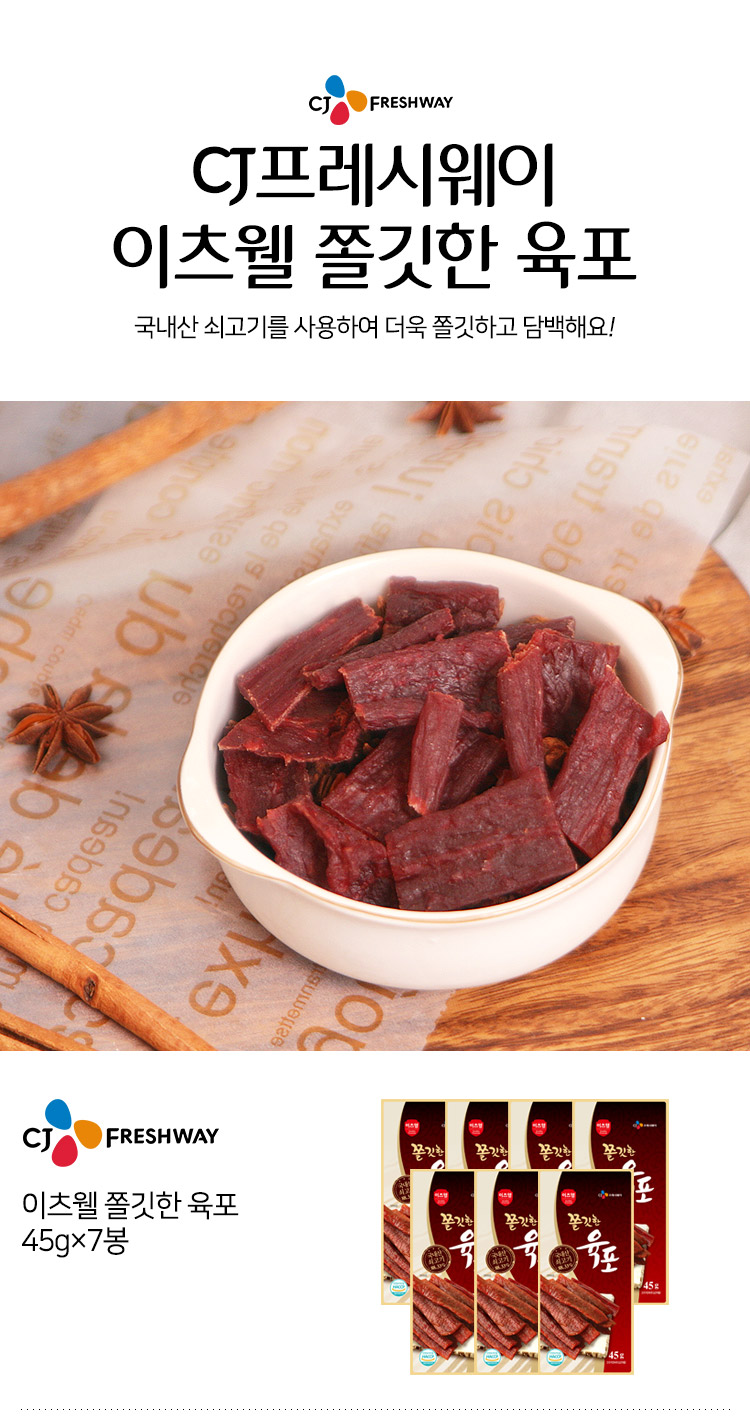 CJ프레시마켓,[직영특가]이츠웰 쫄깃한 육포(45gx7봉)