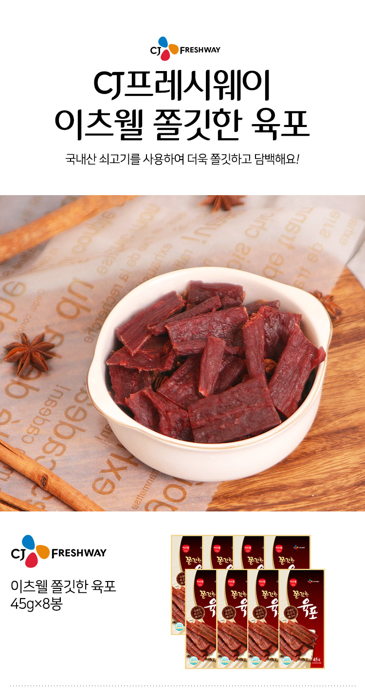CJ프레시마켓,[직영특가]이츠웰 쫄깃한 육포(45gx8봉)