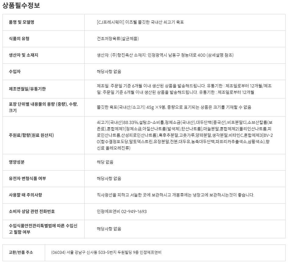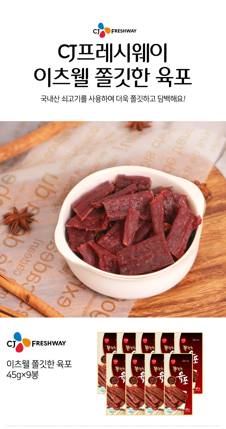 CJ프레시마켓,[직영특가]이츠웰 쫄깃한 육포(45gx9봉)