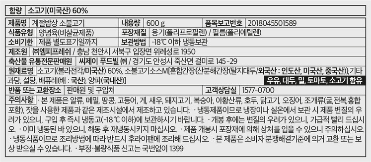 • 계절밥상 소불고기(600g) 3팩 세트